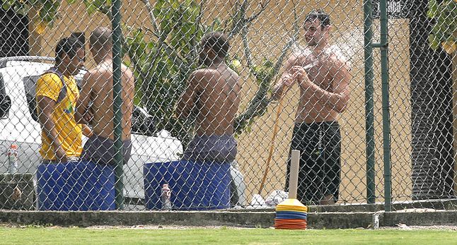 O forte calor do Rio de Janeiro na manhã desta quarta-feira fez os jogadores apelarem para o banho de mangueira após o treino no Vasco-Recreio. Eles participaram de uma atividade tática e técnica sob o comando do técnico Marcelo Oliveira.