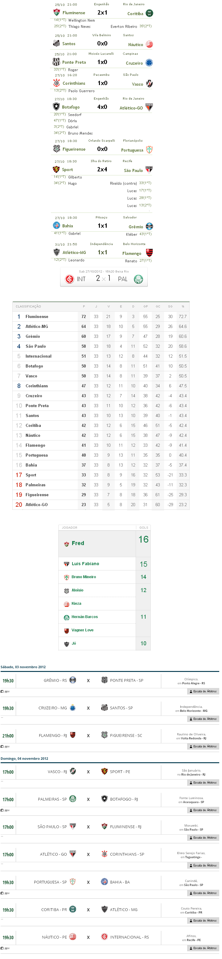 Terminada a 33ª rodada do Campeonato Brasileiro 2012 (a 14ª do returno), o Vasco, que perdeu para o Corinthians por 1 a 0, caiu da 5ª para a 7ª colocação na tabela. A diferença para o 4º colocado, o São Paulo, e consequentemente para o G4, subiu de 5 para 8 pontos.