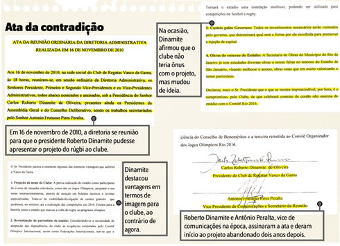 As explicações da diretoria vascaína para a não utilização de São Januário nos Jogos Olímpicos de 2016 apontam algumas contradições. O LANCENET! teve acesso à ata da reunião ocorrida em 16 de novembro de 2010 sobre o projeto do rúgbi e o documento, assinado pelo presidente Roberto Dinamite e pelo primeiro vice-presidente geral Antônio Peralta, mostra que o Cruz-Maltino considerava que a empreitada poderia ser muito proveitosa. Porém, após o Comitê Organizador descartar o uso da Colina, o discurso mudou.