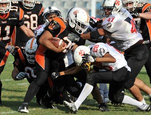 A derrota veio por 17 a 14. O Vasco saiu na frente do placar, abrindo 3 a 0 com um field gol de Ryan, com 40 jardas. O Tritões acordou e partiu para cima. O No primeiro quarto, o camisa dez Cirilo recebeu passe longo do americano D'Angelo e marcou o primeiro touchdown do jogo. No chute extra, José ampliou: 7 a 3.