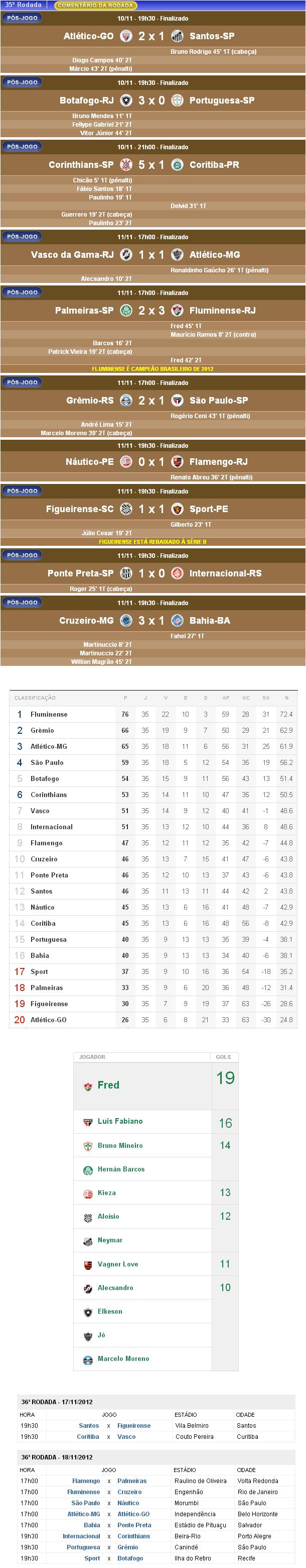 O Fluminense se sagrou campeão brasileiro com 3 rodadas de antecedência. Por outro lado, Atlético-GO e Figueirense estão matematicamente rebaixados.