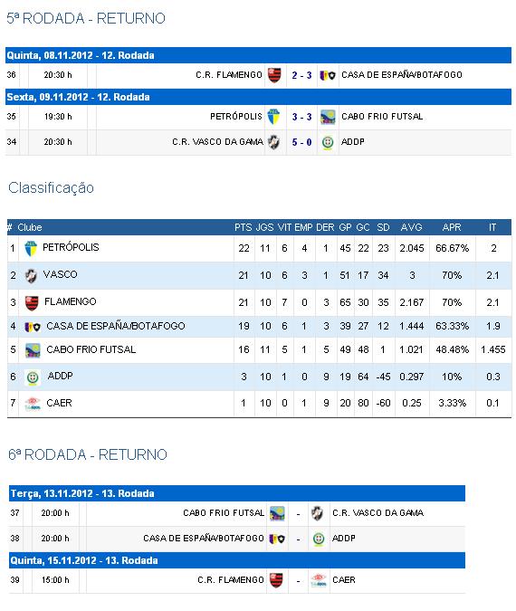 Com a goleada de 5 a 0 sobre a ADDP na última sexta-feira (09/11), em São Januário, o time sub-20 do Vasco chegou a 21 pontos na 1ª fase do Estadual e ultrapassou o Flamengo, que foi derrotado pelo Botafogo. Agora em 2º lugar, atrás apenas do Petrópolis, a garotada do Vasco volta a quadra nesta terça-feira (13/11), em Cabo Frio, contra o Cabo Frio Futsal.