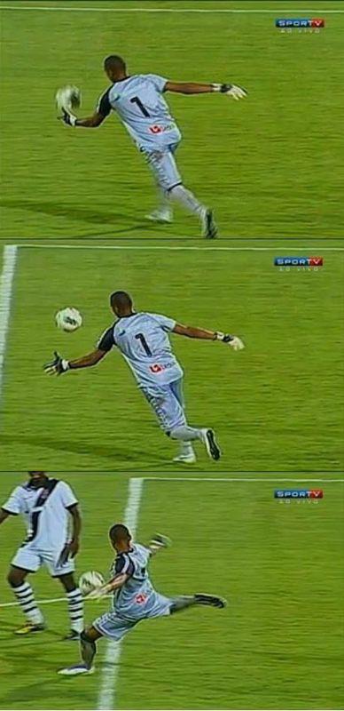 Pela Copa do Brasil Sub-20, o Vasco perdeu para o Atlético-MG por 1 a 0 na noite da última 3ª-feira (13/11), em Sete Lagoas (MG). O gol da vitória do Galo resultou de um lance em que o juiz, erradamente, considerou que o goleiro vascaíno havia posto a mão na bola fora da área. Veja, abaixo, vídeo e fotos que mostram claramente que o árbitro se equivocou: