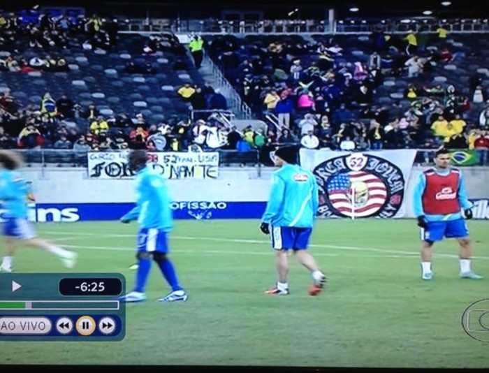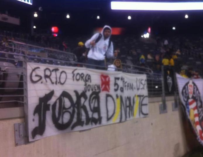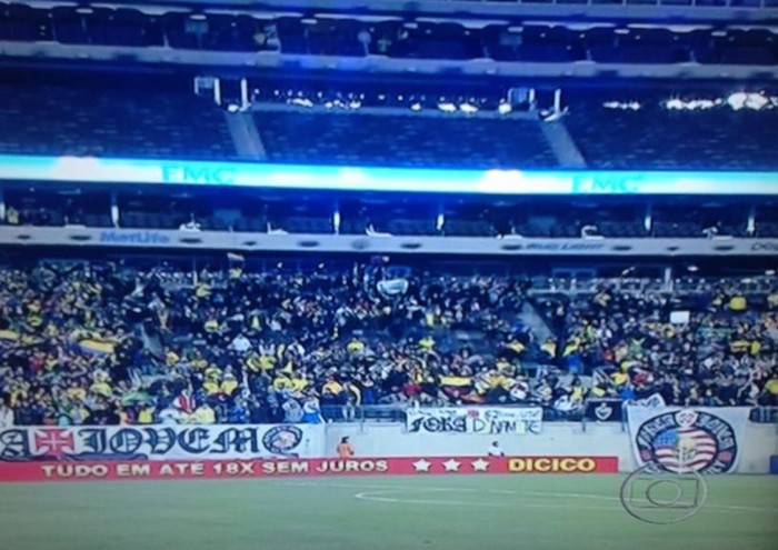 Proibida de frequentar estádios no Brasil por 6 meses, devido a uma decisão do Ministério Público, a Força Jovem (52ª Família) se faz presente no MetLife Stadium, em Nova Jersey, nos Estados Unidos, onde a Seleção Brasileira enfrenta a Colômbia em amistoso na noite desta 4ª-feira (14/11). Uma das faixas pede a saída do presidente Roberto Dinamite do Vasco.