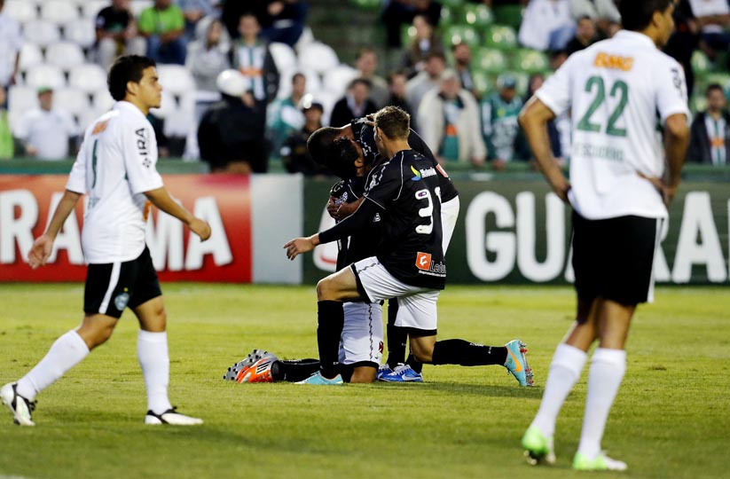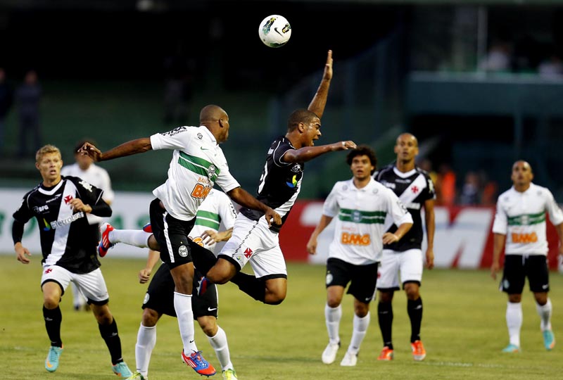 Depois de sete rodadas sem vencer, o Vasco fez 2 a 1, de virada, sobre o Coritiba, neste domingo, no Couto Pereira. Com o resultado, a equipe chega a 54 pontos e mantém as chances matemáticas de classificação para a Libertadores. O São Paulo, o quarto colocado, tem 59 e enfrenta o Náutico neste domingo, no Morumbi. A equipe cruz-maltina entrou em campo seus principais nomes, como Juninho e Felipe. Sem os medalhões, o jeito foi a aposta em jovens, como Marlone, Jhon Cley e Romário, todos crias da base do clube. Este último fez um gol de cabeça e iniciou a reação do time. O Coxa permanece com 45 pontos, na 14ª posição, e ainda não afastou matematicamente o risco de rebaixamento. O principal destaque alviverde na partida foi Lincoln, que marcou um golaço e comandou o meio de campo.