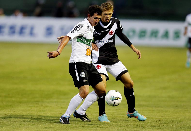 A partida começou em um ritmo lento, mas com o Coritiba no comando das ações. Se o Vasco teve que apostar em seus jovens, a arma do Coxa ser o experiente Lincoln. Logo aos nove minutos, após uma cobrança de escanteio, o camisa 10 dominou a bola no alto e, sem deixar ela cair, mandou uma bomba que foi parar dentro do gol de Fernando Prass. Um golaço que deixou a equipe alviverde em vantagem na primeira finalização da partida. Até equilibrar as ações, o Vasco correu o risco de levar mais um gol, mas Renato Silva impediu que o chute de Rafinha entrasse no gol após já ter passado por Prass. A equipe cruz-maltina, em um descuido da defesa do Coxa, empatou o jogo aos 22 minutos. Wendel cruzou na medida para Romário, que, entre dois zagueiros, cabeceou com estilo para a rede de Vanderlei. O atacante, de 20 e nome de craque, se emocionou com o primeiro gol logo em sua primeira partida como titular.