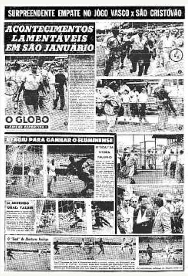 Tristes acontecimentos marcaram o final do encontro de ontem em São Januário, onde Vasco e São Cristóvão empataram (1 x 1). Lamentàvelmente, voltamos a assistir ao descontentamento da torcida quanto à arbitragem. Não tendo recursos para conter o público, o PM Valdemar da Silva deu cinco tiros para o ar, para o chão e em direção ao púbico. A correria foi geral, aproveitando o soldado para, de arma em punho, apanhar o árbitro pelo braço e, ambos correndo, entrarem no vestiário vascaíno, onde, por fim, os dirigentes do Vasco julgaram ser hora de agir. Em seguida, o PM foi autuado, e tudo se acalmou com a chegada de um choque da Polícia Militar.