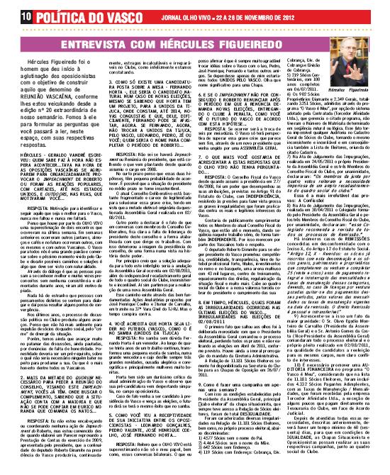 Hércules Figueiredo foi o homem que deu início à aglutinação dos oposicionistas com o objetivo de construir aquilo que denomino de REUNIÃO VASCAÍNA, conforme lhes estou veiculando desde a edição nº 20 extraordinária de nosso semanário. Fomos à ele para formular as perguntas que você passará a ler, neste espaço, com as respectivas respostas.