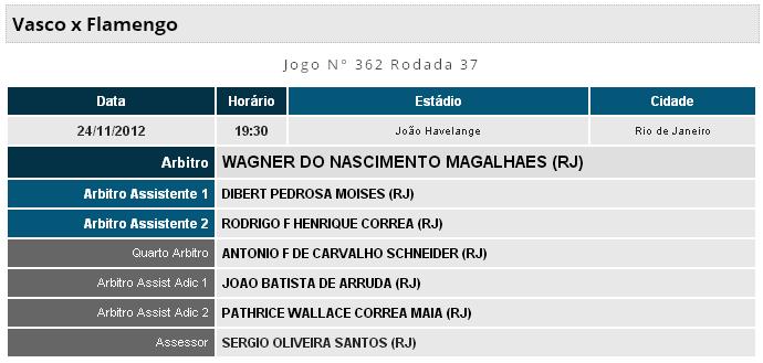 Wagner do Nascimento Magalhães apitará Vasco x Urubu