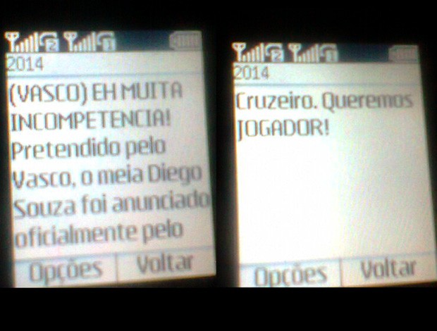 Assinantes do plano "Infinity Vasco", da operadora de celular TIM - empresa que estampa sua marca no número da camisa de jogo cruz-maltina - receberam uma mensagem inusitada na tarde desta sexta-feira. Minutos depois de o Cruzeiro anunciar a contratação do ex-meia do clube Diego Souza, o seguinte torpedo foi enviado para os vascaínos que assinam o serviço: