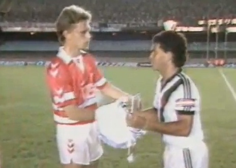 Seleção da Dinamarca - Schmeichel, Lars Oslo, Jonnei Larsen, Kristersen, Freemann (Mosseby), Molby, Steffeson (Helf), Henry Larsen, Nilfort, Brian Laudrup (Orensen) e Strudel (Jorgessen). Técnico: Sepp Piontek