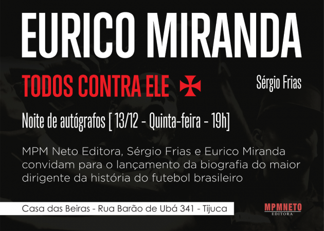 Livro 'Todos contra ele', biografia autorizada de Eurico Miranda, será lançado no dia 13/12