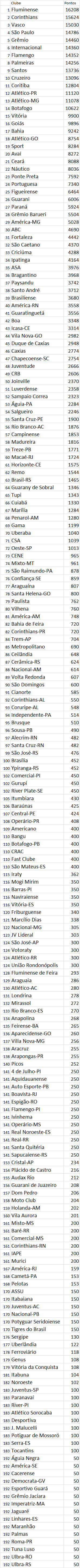 Com as mudanças de critérios, Palmeiras e Santos, líder e vice-líder da versão antiga, despencam para oitavo e nono lugares, respectivamente.