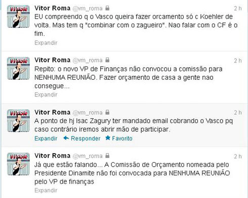 Um dos membros da comissão orçamentária, Vitor Roma postou em seu perfil no Twitter, nesta quinta-feira, que o grupo não realizou nenhuma reunião. De acordo com ele, o vice-presidente de finanças, Nelson de Almeida, não convocou um encontro sequer e alguns membros já se mostram preocupados.