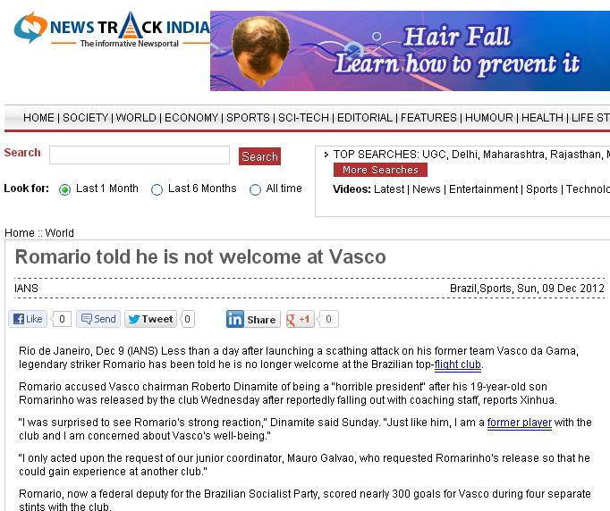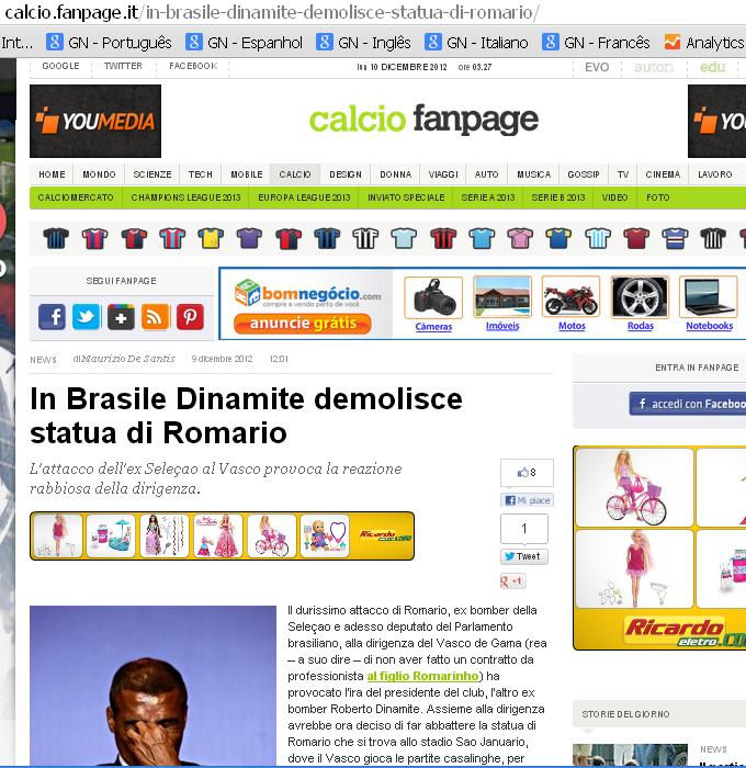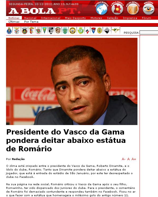 Polêmica entre Dinamite e Romário e possível retirada de estátua ganham repercussão internacional