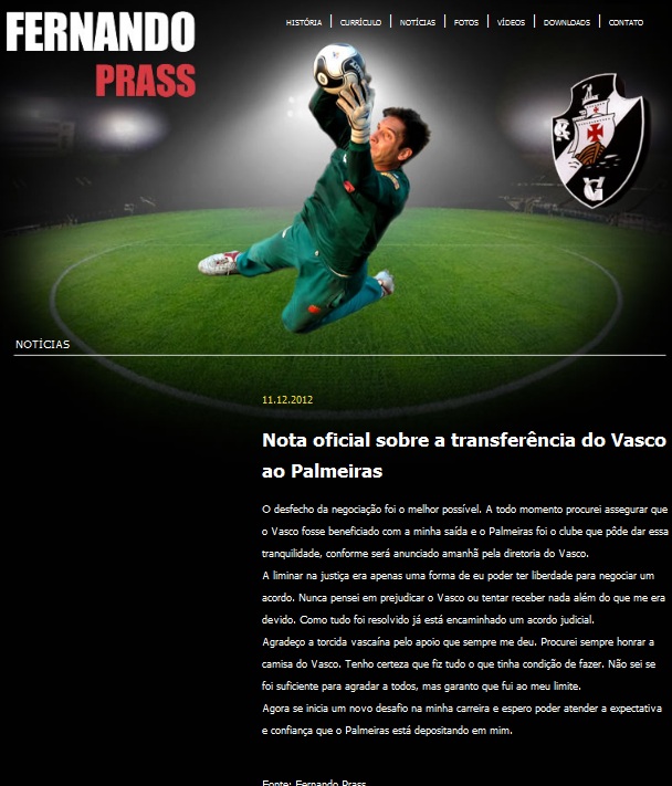 O desfecho da negociação foi o melhor possível. A todo momento procurei assegurar que o Vasco fosse beneficiado com a minha saída e o Palmeiras foi o clube que pôde dar essa tranquilidade, conforme será anunciado amanhã pela diretoria do Vasco.