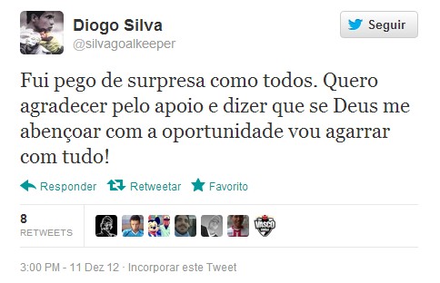@silvagoalkeeper: Fui pego de surpresa como todos. Quero agradecer pelo apoio e dizer que se Deus me abençoar com a oportunidade vou agarrar com tudo!