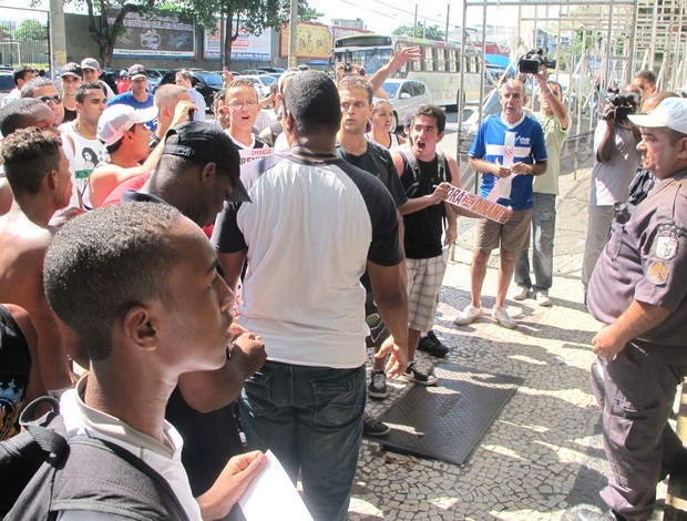 Para evitar tumultos, a diretoria do Vasco pediu reforço policial, e três viaturas chegaram ao local no início da tarde, antes mesmo de os torcedores aparecerem. Num momento tenso, os torcedores se exaltaram quando o vice-presidente de patrimônio do clube, Manuel Barbosa, tentou tirar adesivos que estavam colados no portão do clube, mas a polícia agiu e impediu que os xingamentos se transformassem em empurra-empurra.