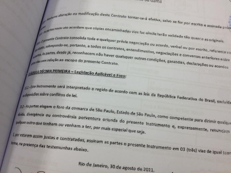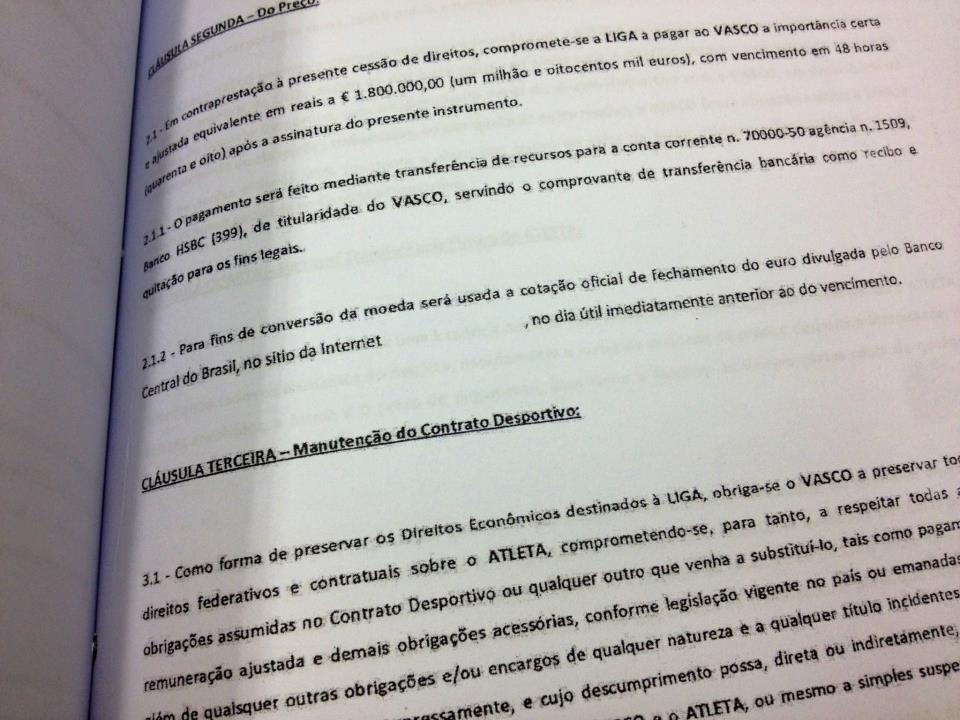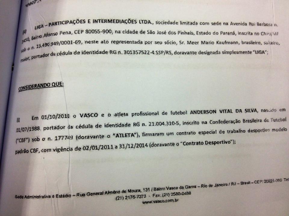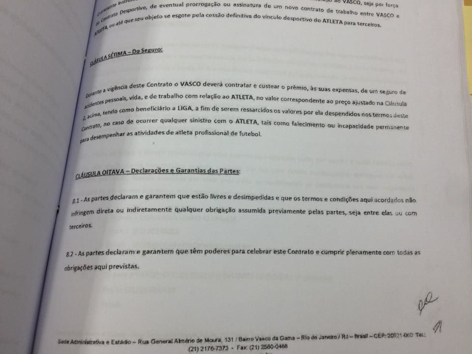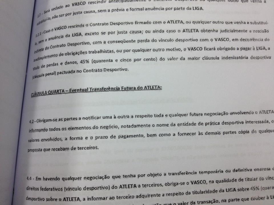 Hoje recebemos através de torcedores do Vasco, uma suposta cópia de um contrato de venda de 45% dos direitos econômicos pela quantia de 1,8 milhao de euros.