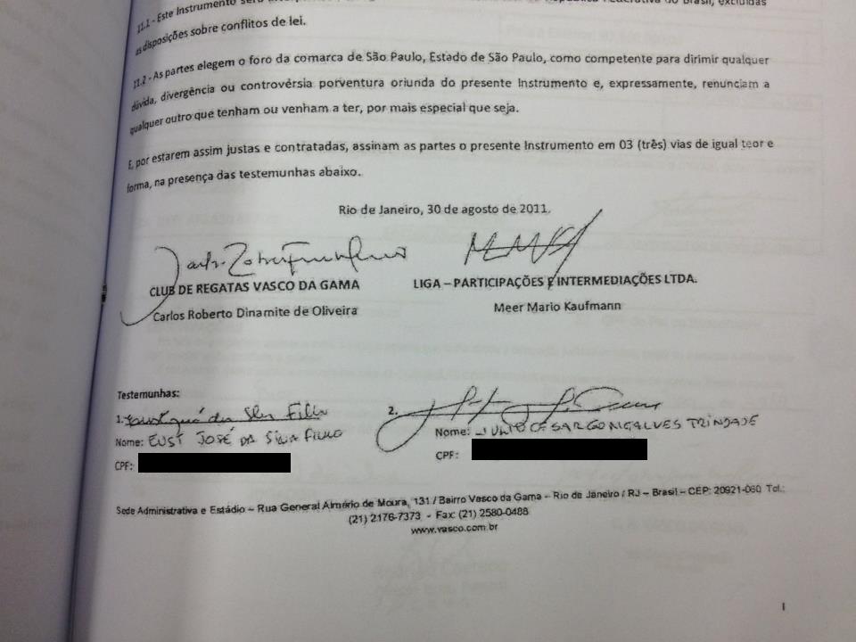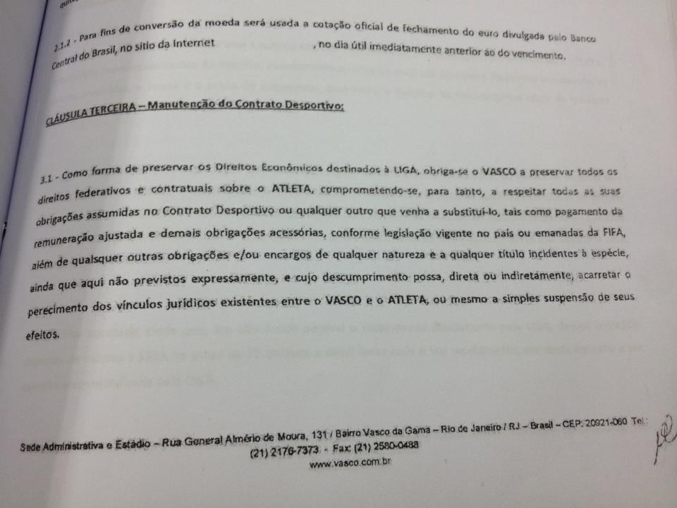 Diante do quadro acima citado, pediremos explicações sobre o assunto na próxima reuniao do conselho pois está claro que caso comprovada a autenticidade dos documentos abaixo, o que nos parece factível, o Vasco fez um péssimo negocio.