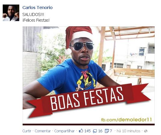 Com gorro de Papai Noel, Tenorio deseja Boas Festas via Facebook