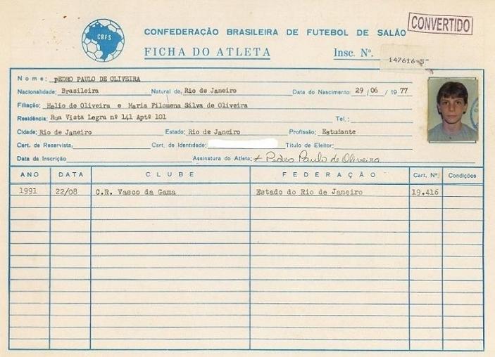 Veja ficha do ídolo Pedrinho da época em que atuava na base do futsal do Vasco