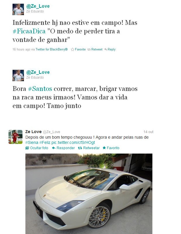 Adepto do Twitter, Zé Love é um usuário assíduo da ferramenta, seja para criticar a postura do próprio time, para avisar que comprou um novo carro, para conversar com amigos e até mesmo para torcer para o Santos, seu ex-clube, na final do Mundial de Clubes da Fifa do ano passado, contra o Barcelona. Mas o hábito não pegou bem entre os torcedores do Genoa, principalmente pelo fato de o atacante não corresponder dentro de campo.