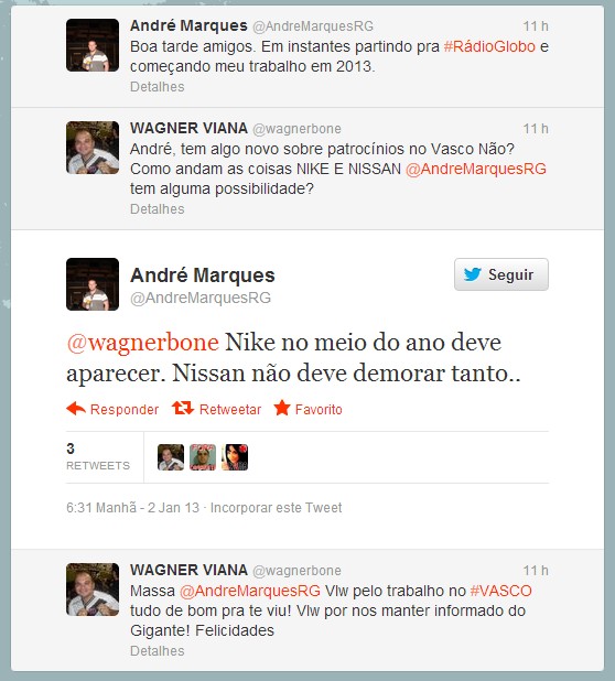 Fonte: Twitter do jornalista André Marques da Rádio Globo
