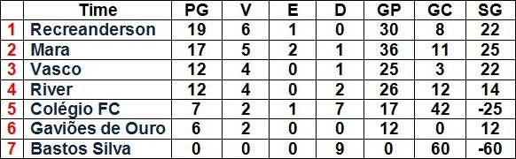 No momento o Vasco se encontra na 3ª colocação, com três jogos a menos que o segundo colocado e dois jogos a menos que o líder Recreanderson.