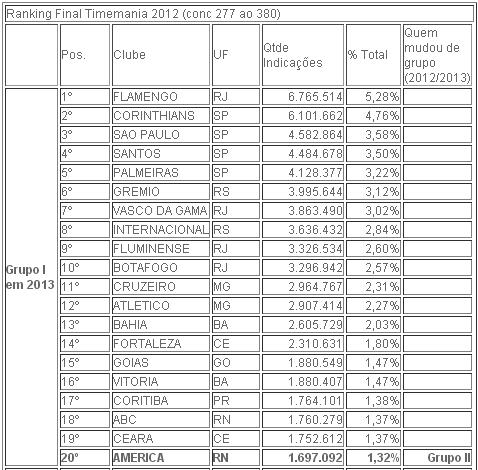 Pelo 2º ano seguido o Vasco figurou na 7ª colocação do ranking da Timemania, que mede a participação dos clubes no número de apostas do concurso.