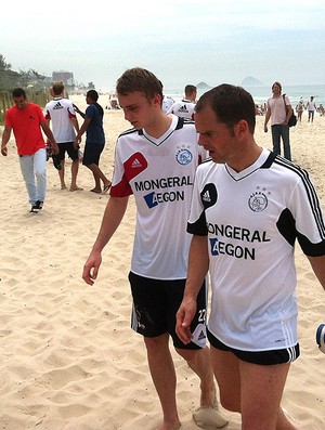 Corrida na praia, banho de mar e altinha nas areias da Barra da Tijuca, Zona Oeste do Rio de Janeiro. Cenas normais na vida do carioca. Mas para os jogadores do Ajax tudo é novidade na passagem pela Cidade Maravilhosa. Nesta segunda-feira, o grupo comandado pelo holandês Frank de Boer, conhecido por sua passagem pelo Barcelona e por ter enfrentado a seleção brasileira na semifinal da Copa do Mundo de 1998, na França, viveu todas essas situações no primeiro dia da passagem pelo Brasil. E tudo na maior descontração.