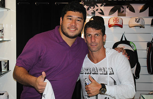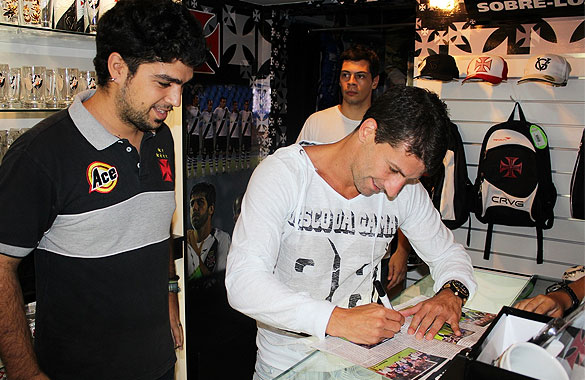 A chuva não impediu que a imensa torcida vascaína marcasse presença na Gigante da Colina da Tijuca, Rua Santo Afonso, nesta quinta-feira (10/01), para a tarde de autógrafos com o ídolo Pedrinho, que durou mais de duas horas. Os torcedores já formavam uma grande fila desde as nove da manha na frente da loja.