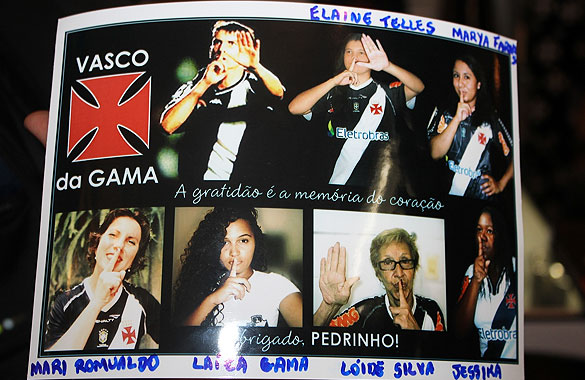 ![]() | ![]() | ![]() Torcedoras entregaram uma montagem para homenagear Pedrinho |