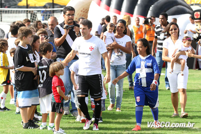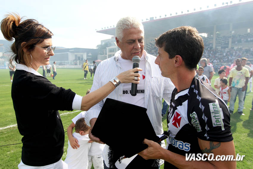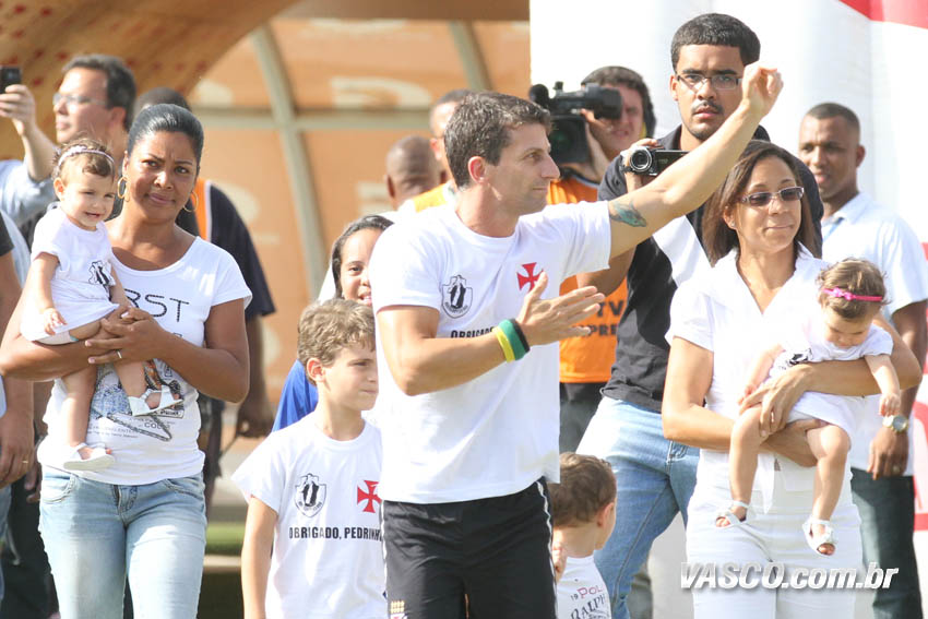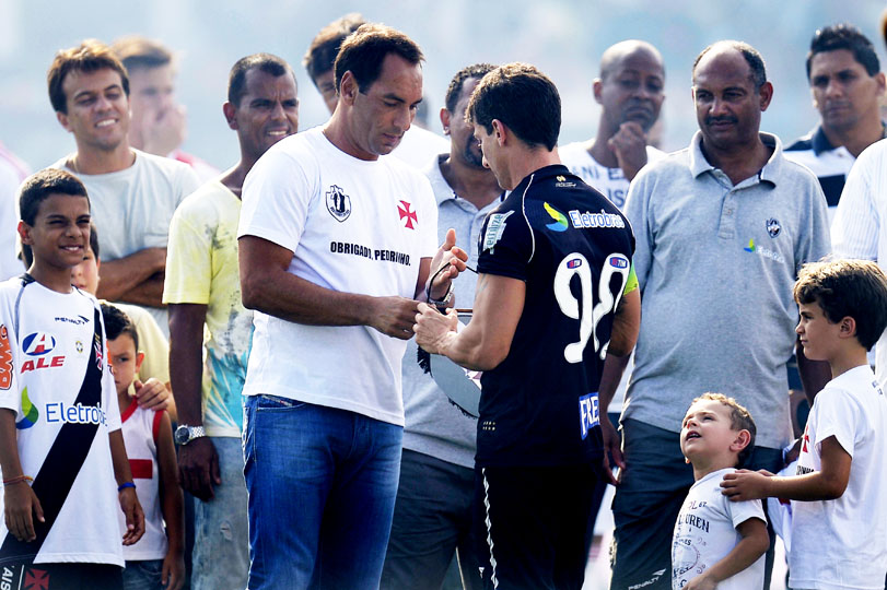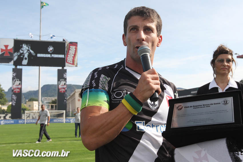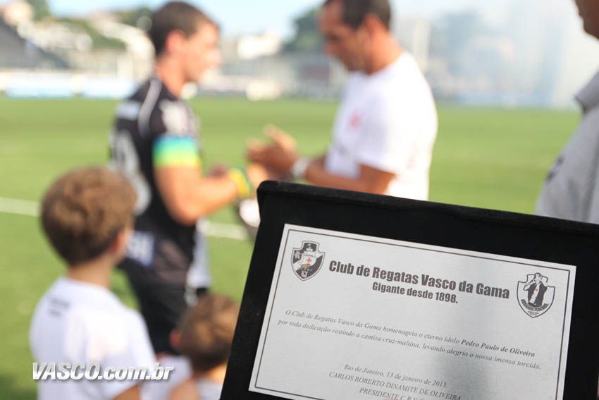 Sem as pompas do retorno de Juninho ou da despedida de Edmundo, que recentemente aproveitaram a noite para trabalhar com jogo de luzes, a festa foi discreta, mas não deixou de emocionar Pedrinho, que teve a companhia de ex-companheiros e campo e foi presenteado com um placa. Ansioso para a bola rolar, o ex-meia logo começou a se aquecer e ouviu orientações dos jogadores enquanto a torcida se dividia entre ovação a ele e hostilidade ao presidente Roberto Dinamite, que foi ao campo e ouviu cobranças sobre a saída de Felipe, melhor amigo do homenageado, que rescindiu o contrato após ser afastado do elenco, na semana passada.
