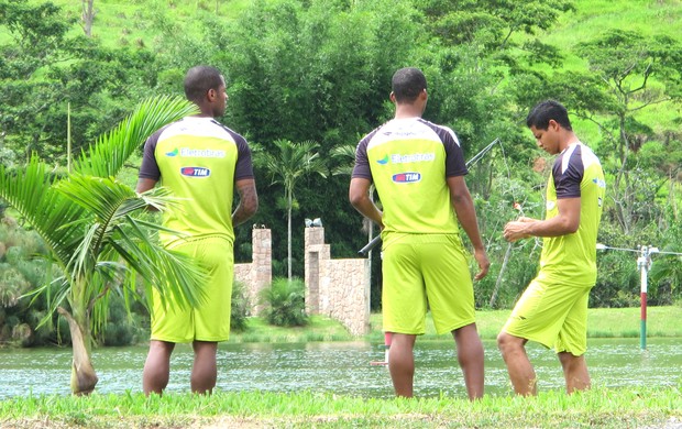 Nesta quinta-feira, pela primeira vez nesta semana o Vasco realizou apenas um treino no dia. Assim, alguns jogadores aproveitaram a tarde livre para pescar num dos lagos do terreno onde está localizado o CT João Havelange, em Pinheiral (RJ). As águas do local estão repletas de tambaquis, peixes típicos da região amazônica.