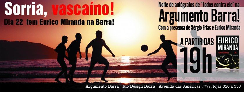 Amigos vascaínos: todos convocados a entupir a Argumento da Barra no dia 22 de janeiro para a Noite de Autógrafos de “Todos contra ele”.
