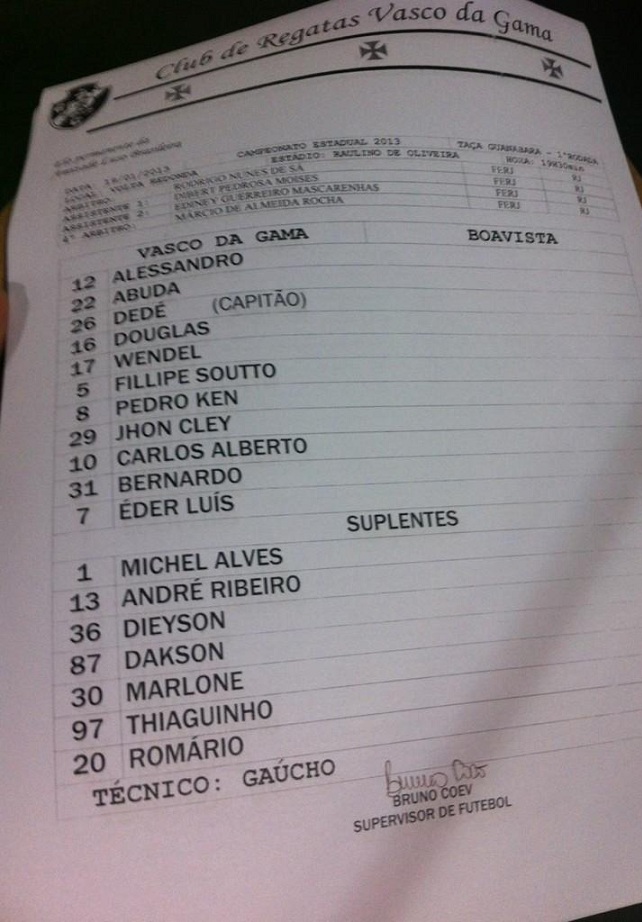 Fonte: Twitter da assessora de imprensa do Vasco Patricia Gregório