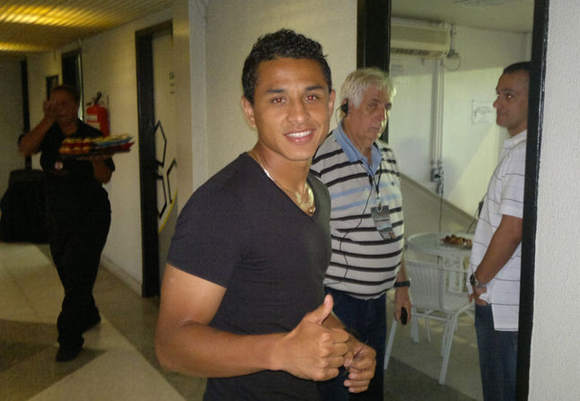 Yotún chegou acompanhado por um representante e integrantes da diretoria vascaína e se dirigiu para um dos camarotes do estádio Raulino de Oliveira.