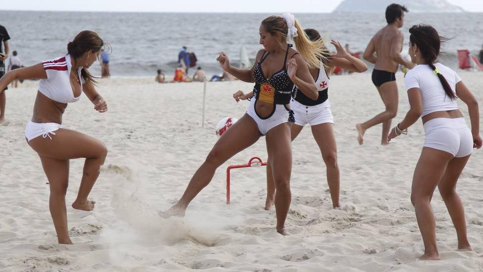 — Assim fica difícil se concentrar no treino! — diziam alguns jogadores da Seleção Brasileira de Futebol de Areia, que trabalhavam bem ao lado do local onde as musas bateram bola.