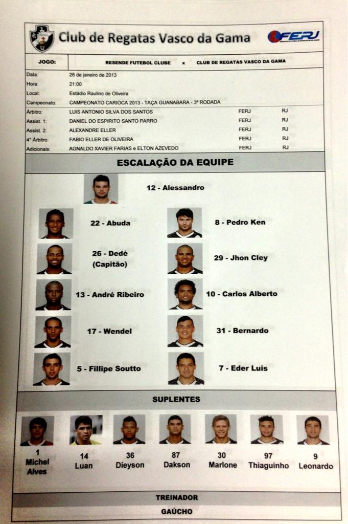 Confira escalação do Vasco para o jogo contra o Resende; Leonardo fica no banco