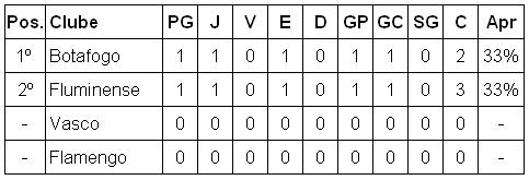 Fonte: NETVASCO (texto, tabela, classificação), FFERJ (regulamento, critérios de desempate)
