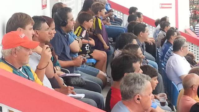 Junto com o ex-lateral-esquerdo do Vasco, da década de 1980, Rafael Correa tirava fotos do posicionamento tático do Flamengo. No detalhe, o posicionamento de Elias, o estreante da tarde.