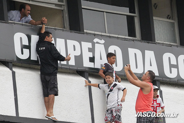 O torcedor vascaíno se esticou todo para conseguir uma foto cumprimentanto o diretor técnico Ricardo Gomes durante o treino de 4ª-feira (30/01) em São Januário.