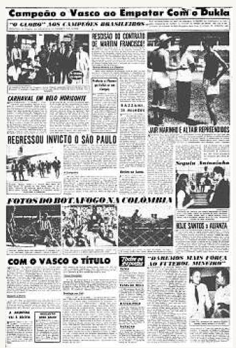 17/01/1963 - Vasco 5 x 0 Oro - Gols: Sabará, Maranhão, Ruvalcaba (c), Villadoniga, Écio