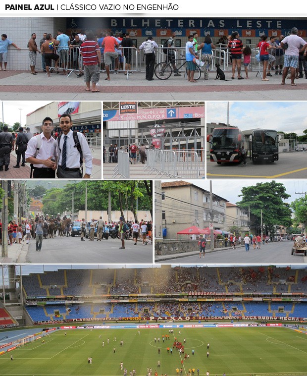 Muitos torcedores chegaram já com a bola rolando, às pressas, não em busca de lugares, já que podiam escolher onde sentar. Mais do que as cores preto, vermelho e branco de rubro-negros e vascaínos, o azul das cadeiras vazias do Engenhão deu o tom do clássico.