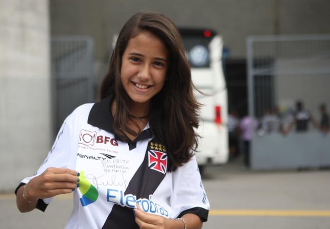 Para se ter uma ideia do quanto Nathália gosta do jogador, ela, que costuma acompanhar a entrada dos jogadores do Vasco, pediu para entrar com Felipe em campo neste sábado, mesmo vestindo a camisa cruz-maltina. Sua mãe, cuidadosamente, precisou explicar que, na atual situação, não seria possível.