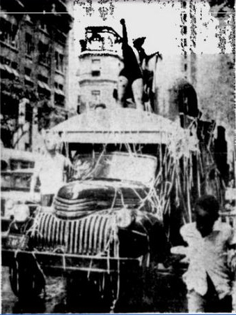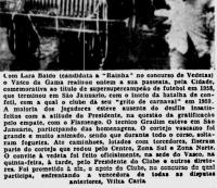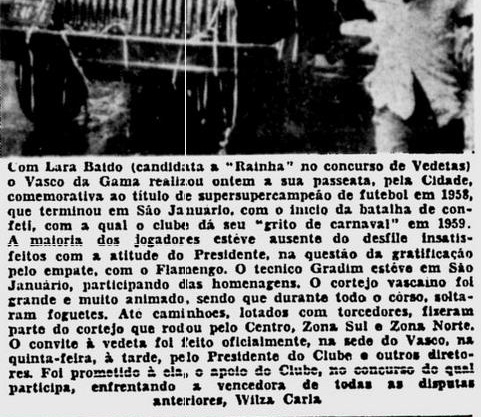 Os torcedores e o Vasco fazem um lindo desfile de Carnaval, a passeata foi para comemorar o Super Super Campeonato de 1958, percorrendo várias ruas desde São Januário, Centro, Zona Norte e Zona Sul da Cidade do Rio de Janeiro em 24 de Janeiro de 1959. Fonte: Arquivo do Jornal Última Hora.
