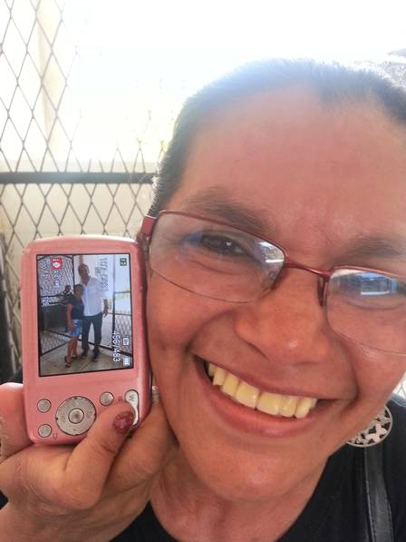 ![]() Dedé abraça a torcedora de Manaus após o treino do Vasco | ![]() Ana mostra a foto que tirou com Ricardo Gomes | ![]() "Eu vim do Amazonas. Deixa eu tirar foto com vocês", pede a torcedora |