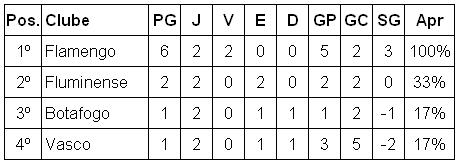 § 1º - Será campeão dos Super Clássicos a associação que somar maior número de pontos ganhos nas partidas jogadas entre si por Flamengo, Vasco, Botafogo e Fluminense, durante as 8 rodadas da Taça Guanabara e as 7 rodadas da Taça Rio.