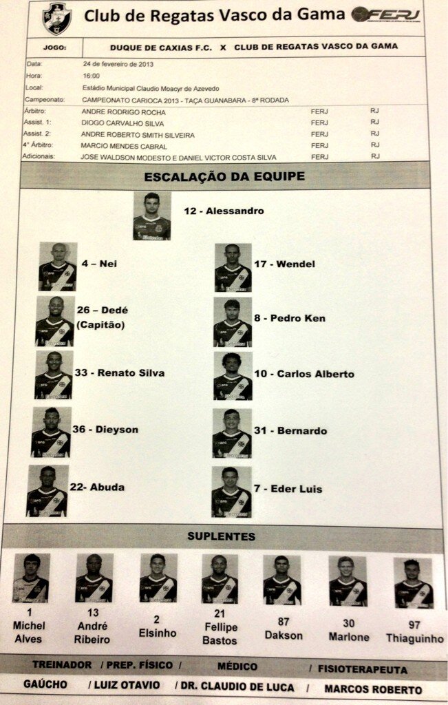 Confira a escalação oficial do Vasco para o jogo contra o Duque de Caxias